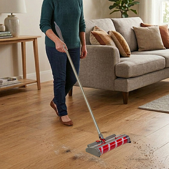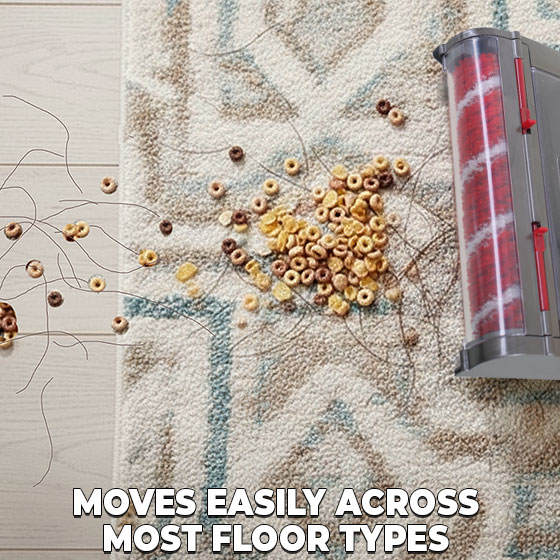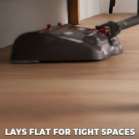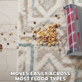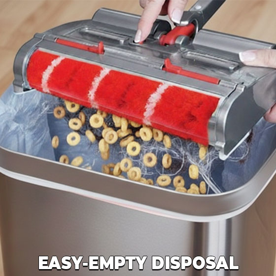 The self-cleaning brushroll helps prevent hair wrap, making maintenance simple and mess-free. Features a low-profile design that lays flat, easily reaching under furniture, while the easy-empty disposal keeps cleanup hygienic.