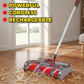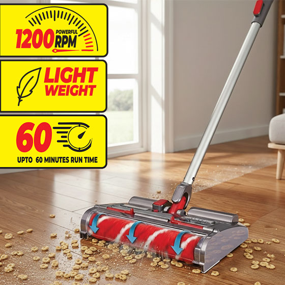 This cordless, rechargeable sweeper is lightweight yet powerful, designed to pick up dust, crumbs, and pet hair from hard floors, carpets, and tight spaces.