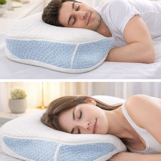 CERVICAL NECK SUPPORT – Central hollow cradles the head while raised side wings provide extra support for side sleepers, helping reduce neck and shoulder strain.