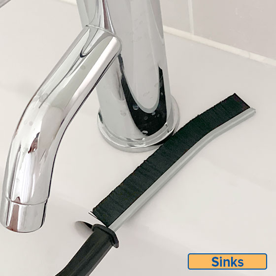 Say goodbye to gunk in tight spaces! Our Crevice Brush has tough bristles and a slim, flat head that gets into those hardto-reach spots; from behind taps to deep corners.