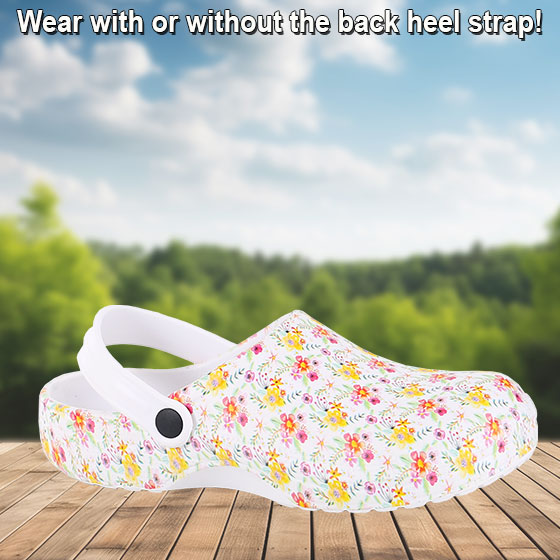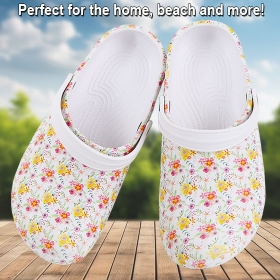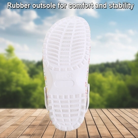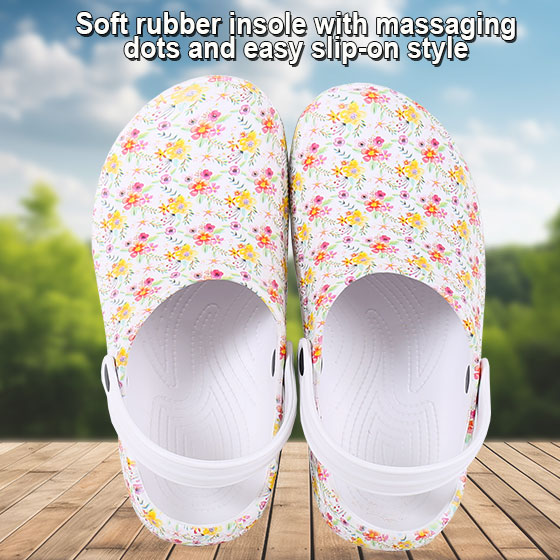 Slip into all-day comfort with these lightweight floral clogs. Designed with a soft rubber insole with massaging dots and easy slip-on style, they offer gentle support for errands, garden strolls, or relaxing at home.