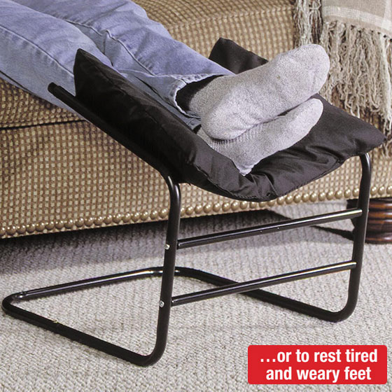 Supporting and elevating your legs can aid with post operative recovery, relief from back pain, improve circulation & simply to rest tired aching legs. The lightweight design features a tubular frame topped with a soft padded nylon/polyester cushion at the right height & angle for use with most chairs & couches.