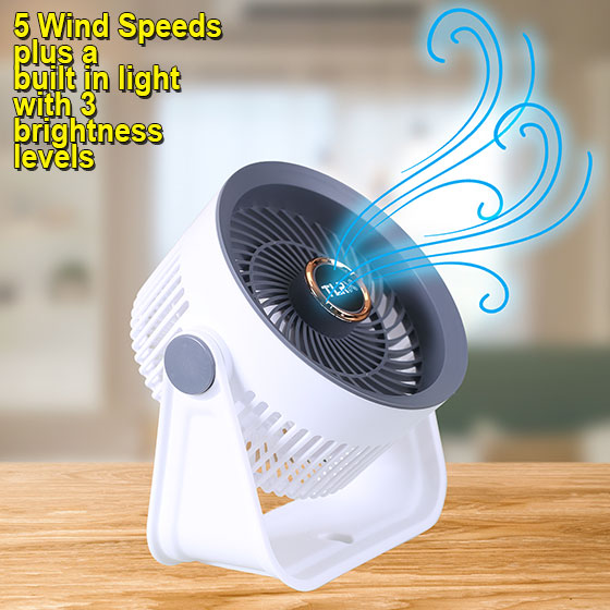 Also features a built in light with 3 brightness levels. Whether you're working, or relaxing, this versatile tabletop fan gives you total control over your comfort, without taking up valuable space.