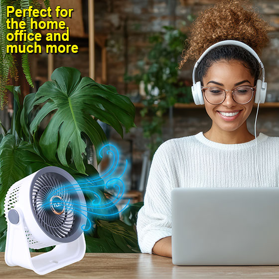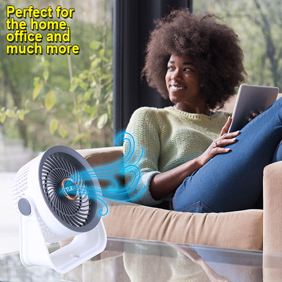 With a fully adjustable 360° rotating head, you can direct airflow exactly where you need it. Making it perfect for desks, bedside tables, workshops, outdoors and more.