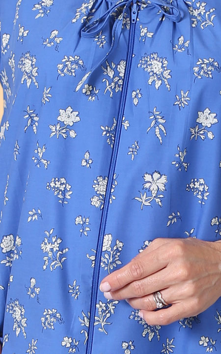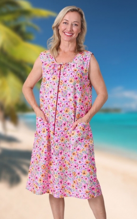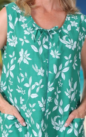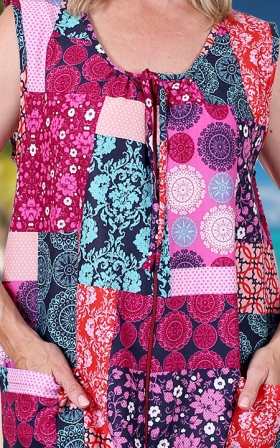 Zip front shift with roomy patch pockets and bow accent. Woven 100% cotton. Machine wash. Approx length 107cm.