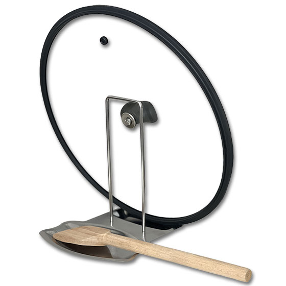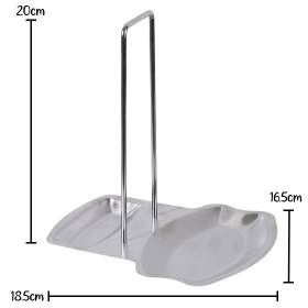 Say goodbye to messy countertops with this sleek and durable metal spoon and lid rest. Designed to hold both your cooking spoon and pot lid in one convenient place, it keeps drips, splatters, and spills off your bench while you cook.
