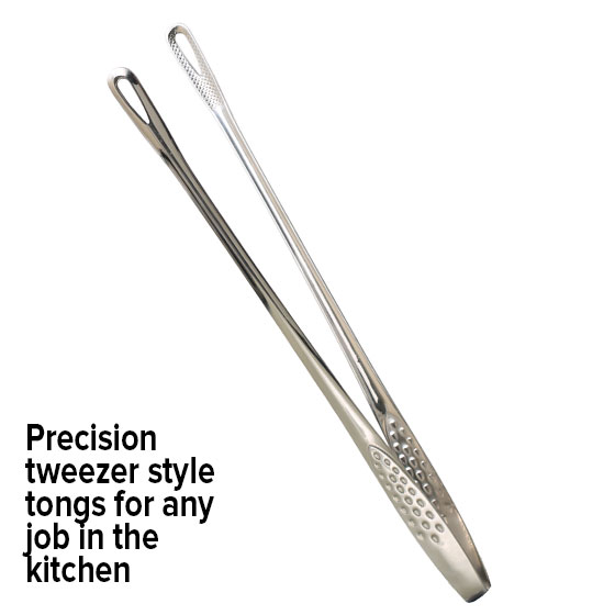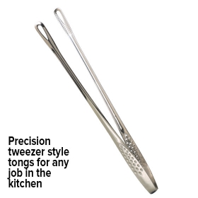 From flipping steaks on the BBQ, to tossing pasta, or reaching that last olive at the bottom of the jar, these stainless steel, tweezer style tongs are built for precision and versatility.