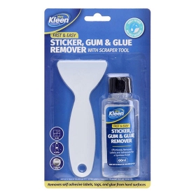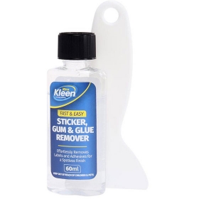 Tackle stubborn, sticky messes with confidence using the Sticker, Gum & Glue Remover Kit. This complete solution includes a powerful 60ml adhesive remover and a convenient scraper tool, designed to effortlessly lift self-adhesive labels, stickers, tags, gum, and glue from hard surfaces. Perfect for any home or office, it leaves a spotless finish with no oily residue or odors.