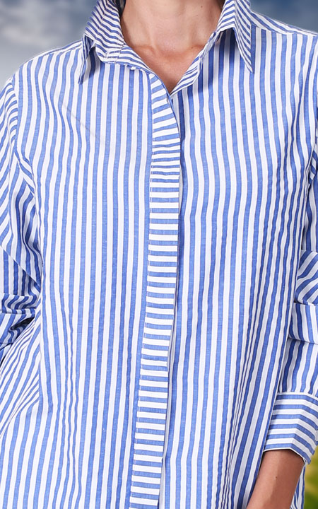 Elevate your daily style with our Stripe Shirt. With shirt collar, hidden button front placket for a clean look, button front cuffs and a-line split hem for an elegant finish.