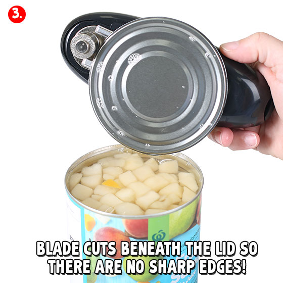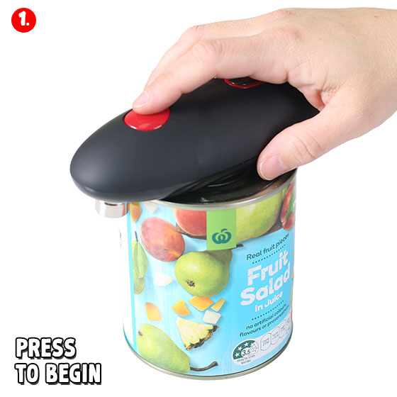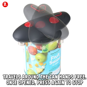 Place it on the can, push the button and the can will open in seconds! Press button again to stop once its opened.